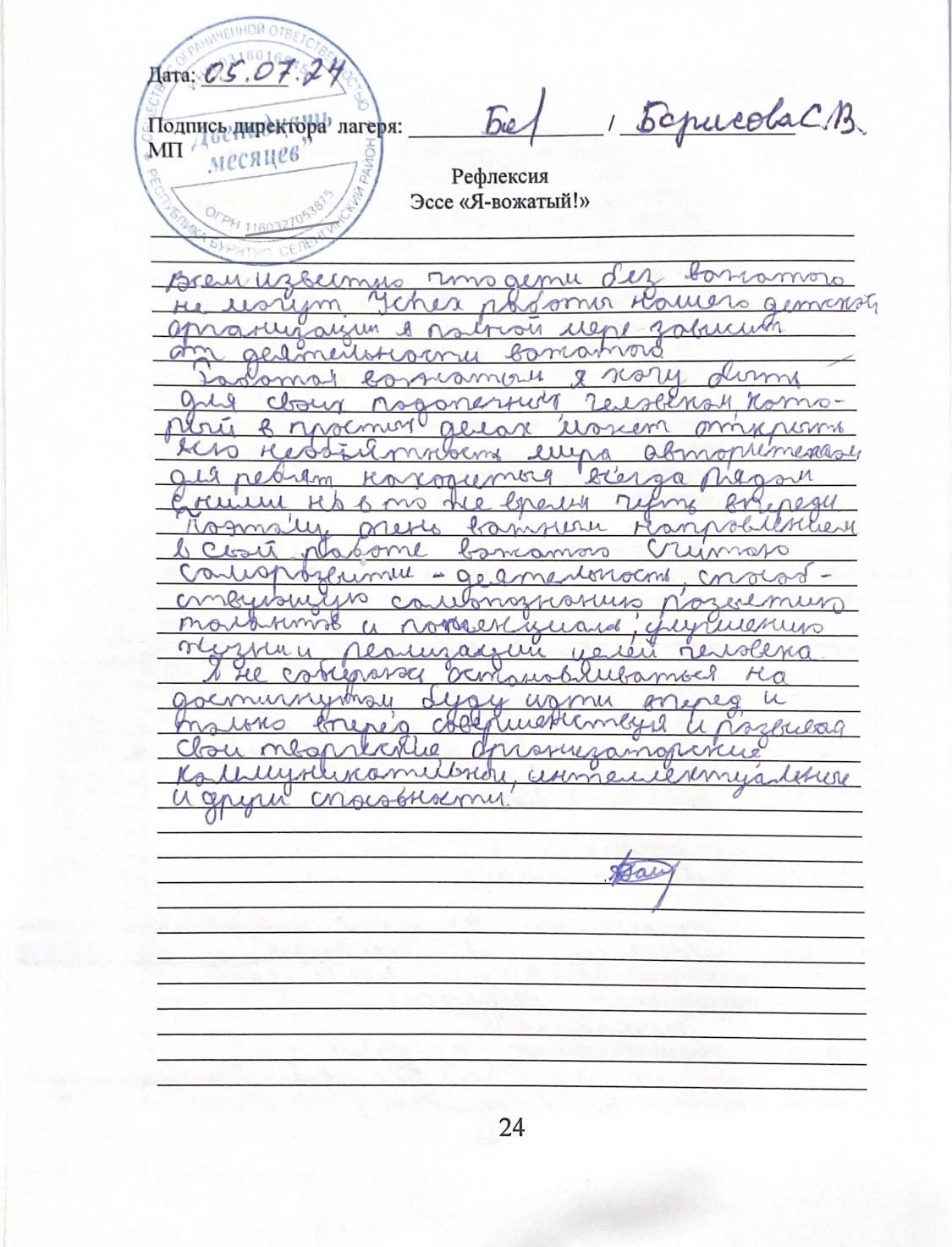 Отчёт по практике ПП 02.02 Организация летнего отдыха детей